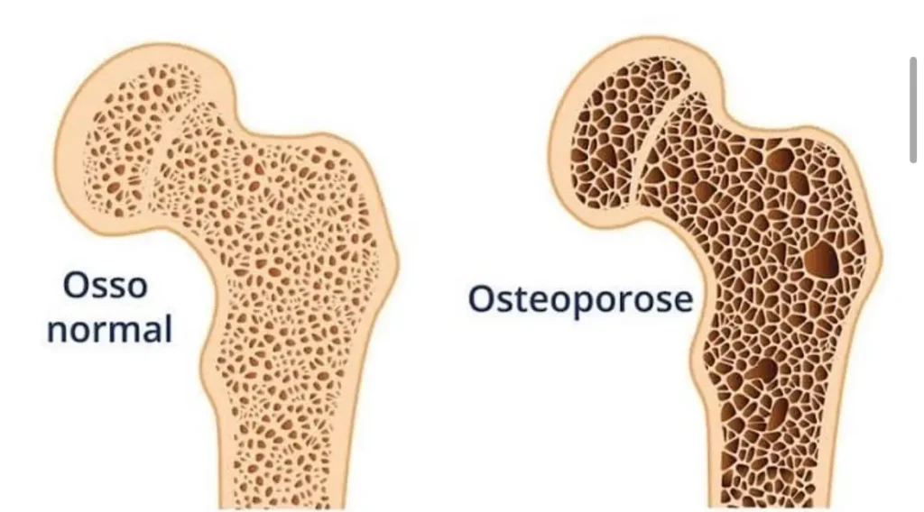 A osteoporose surge quando a ação dos osteoclasto(célula responsável por “polir” o osso) se torna maior que a ação dos osteoblasto (célula responsável pela “construção” óssea), fazendo com que haja uma diminuição da densidade mineral óssea.